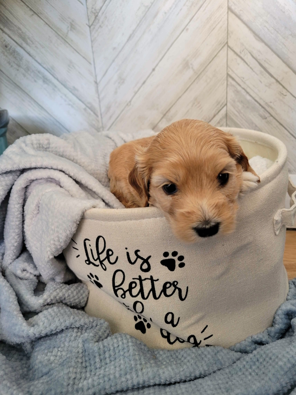 Nos mini cockapoos pèseront entre 13 à 18 livres et mesureront 15 pouces de hauteur.